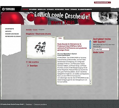Entwurf und Programmierung des kompletten Frontends, Umkreissuche, Ajaxkomponenten und Detailansicht mittels Symfony-Framework für Yamaha im Auftrag von Alster Media. Erstellung des Flash-Teasers nach grober Vorlage und Verbesserung von grafischen Elementen.